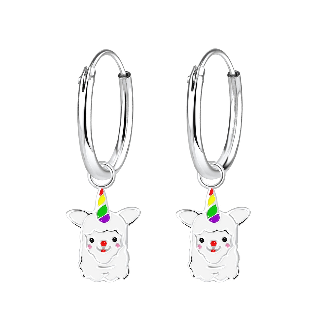 Silver Alpaca Charm Hoop Earrings - 3861