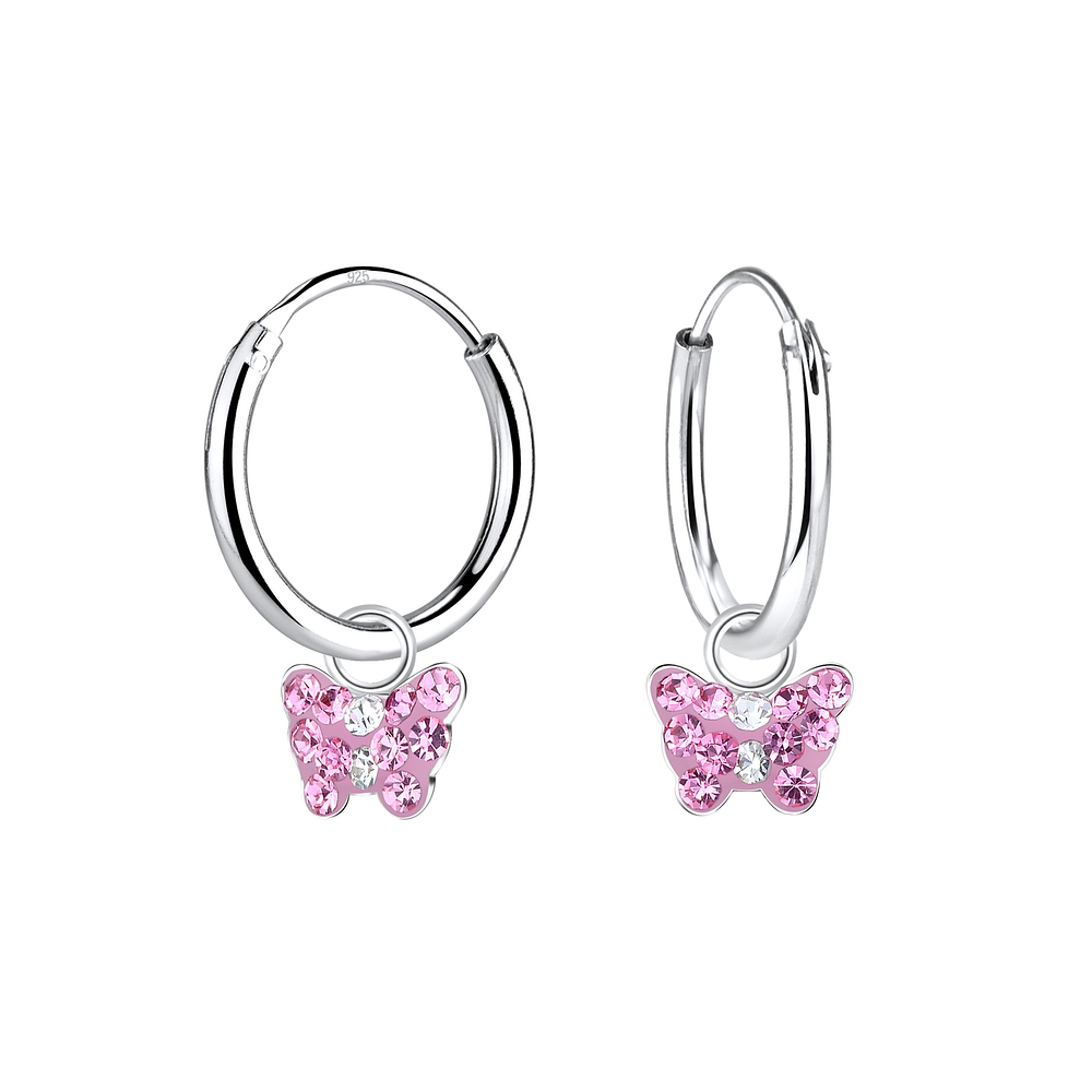Silver Butterfly Charm Hoop Earrings - 8406