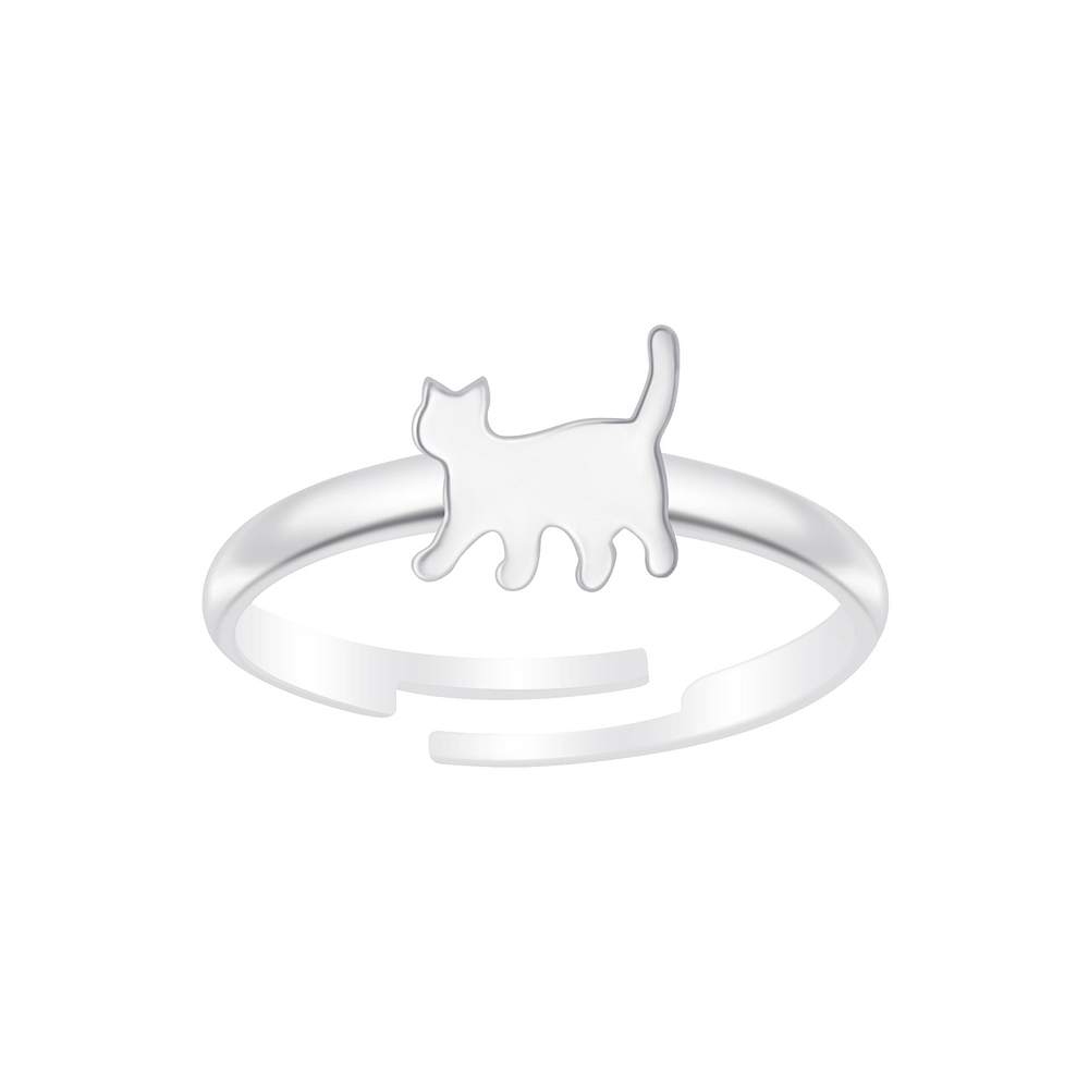 Lightweight Wholesale Silver Cat Adjustable Ring - 6971 with enamel charm, Silver + E-Coat (Anti-Tarnish) finish, and adjustable (3-5) fit, from our Animal collection