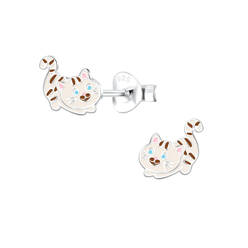Silver Cat Stud Earrings - 10511