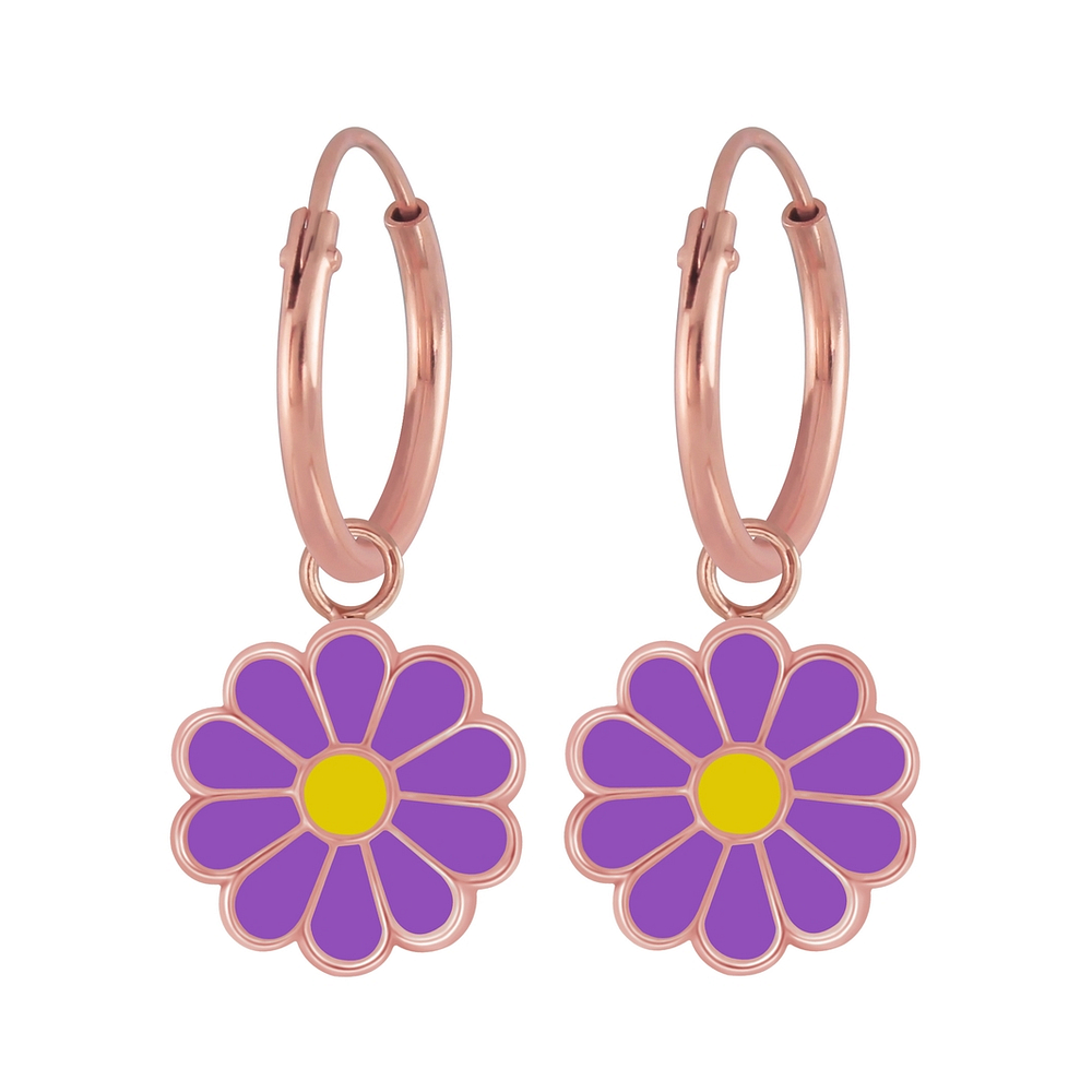 Silver Daisy Flower Charm Hoop Earrings - 6749