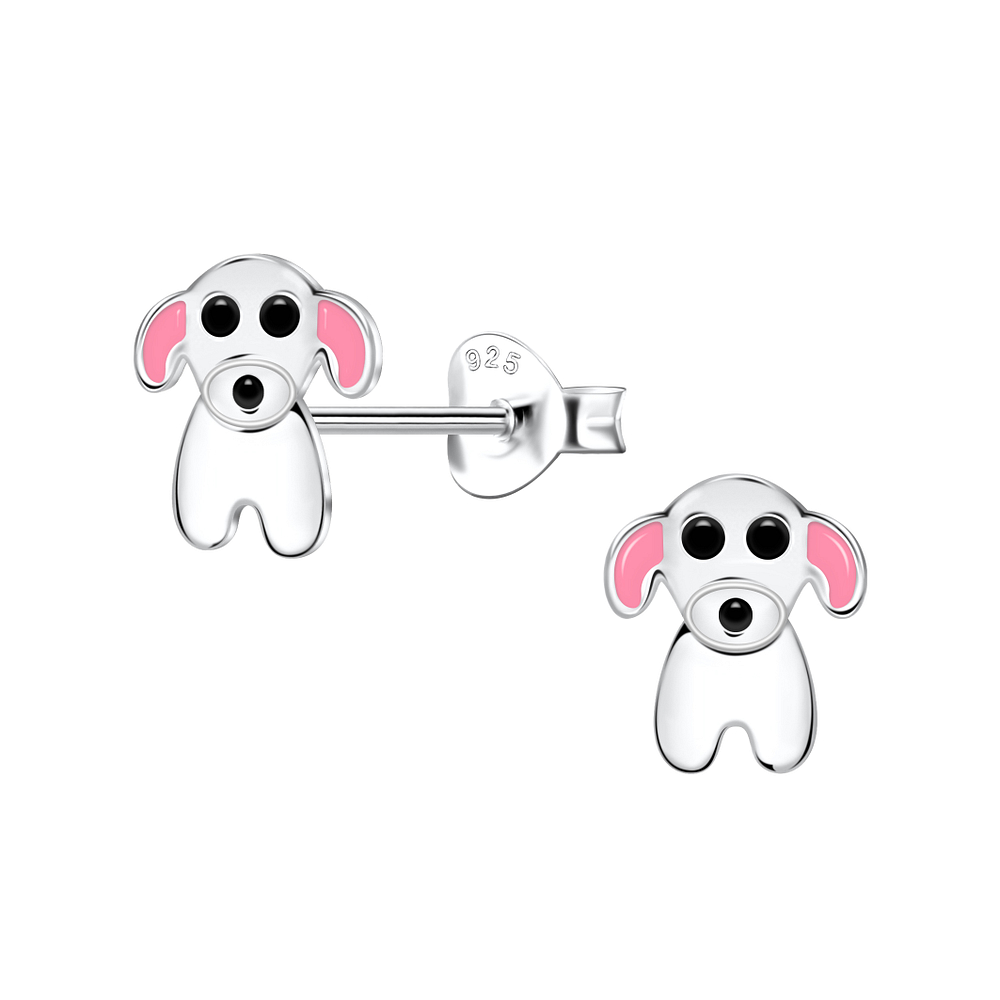 Silver Dog Stud Earrings - 21644