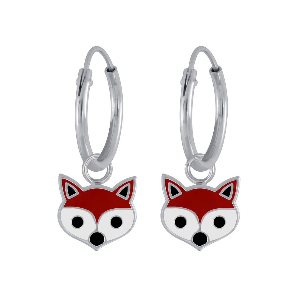 Silver Fox Charm Hoop Earrings - 2984