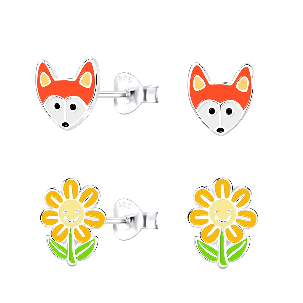 Silver Fox Stud Earrings Set - 16835