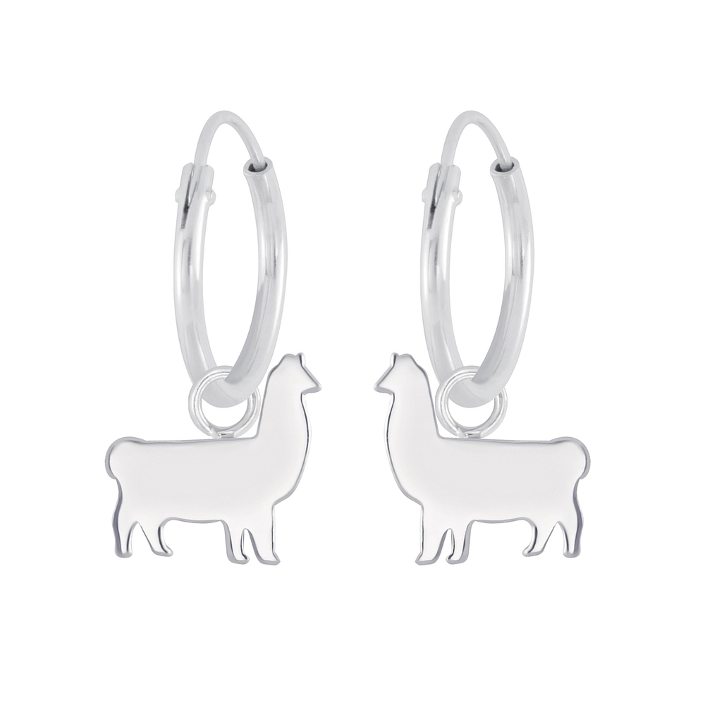 Silver Llama Charm Hoop Earrings - 4957