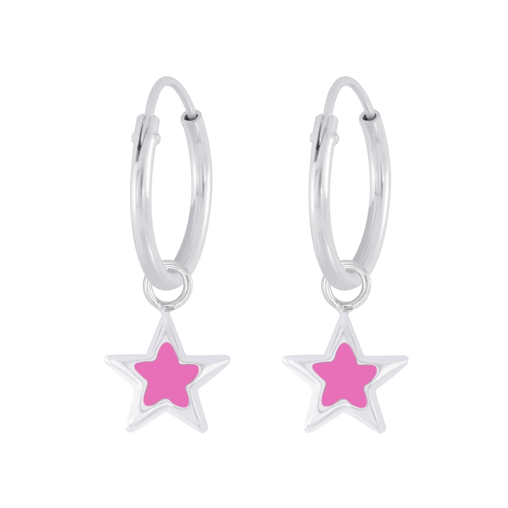 Silver Star Charm Hoop Earrings - 5902