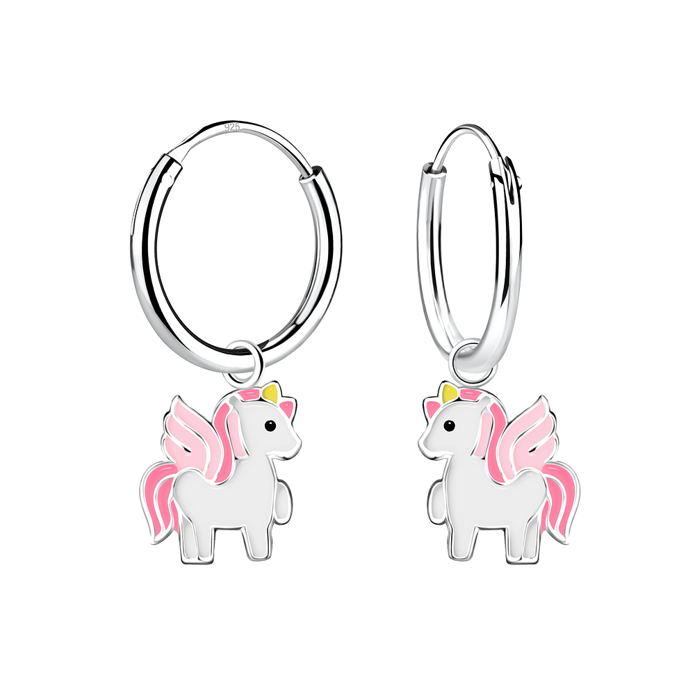Silver Unicorn Charm Hoop Earrings - 12623