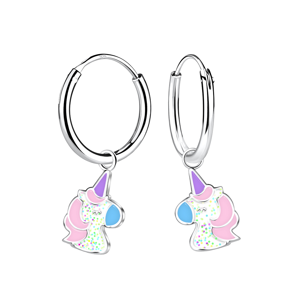 Silver Unicorn Charm Hoop Earrings - 22976
