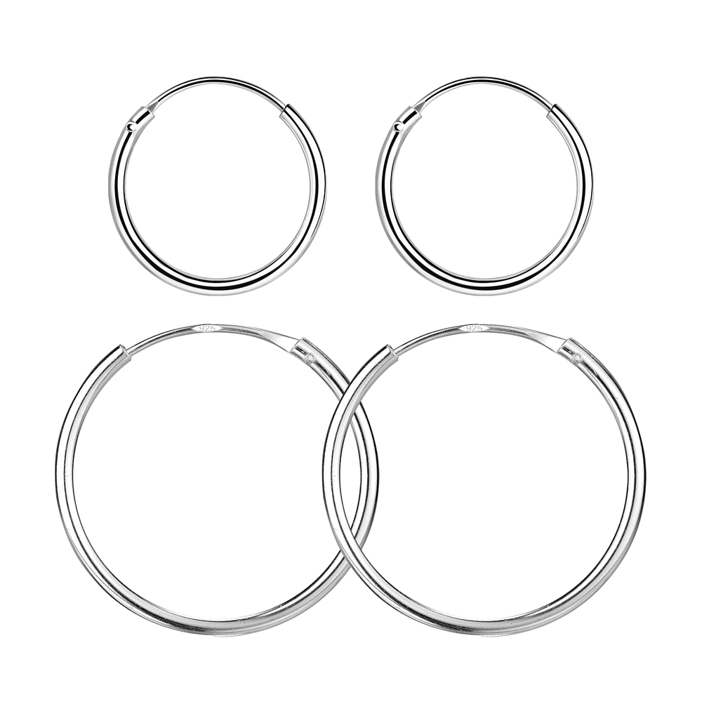 14mm and 20mm Silver Hoop Earrings Set - 22345