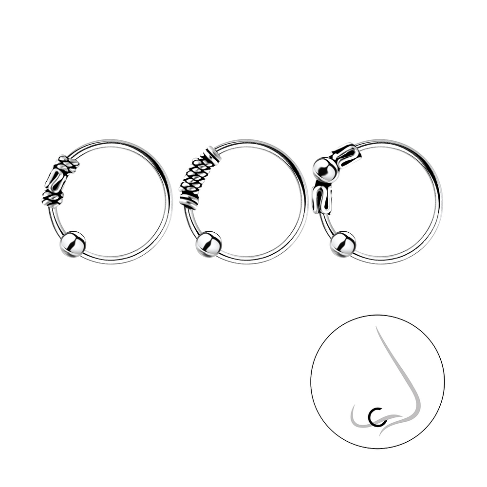 10mm Silver Bali Ball Closure Ring Set – Pack of 3 - 7827