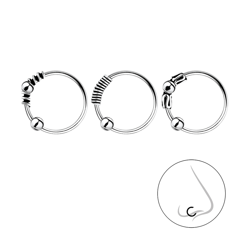 10mm Silver Bali Ball Closure Ring Set – Pack of 3 - 7830