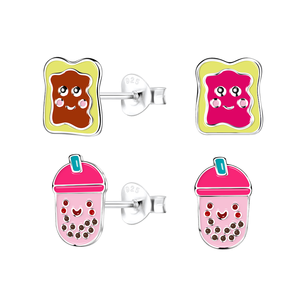 Silver Breakfast Treats Stud Earrings Set - 22305
