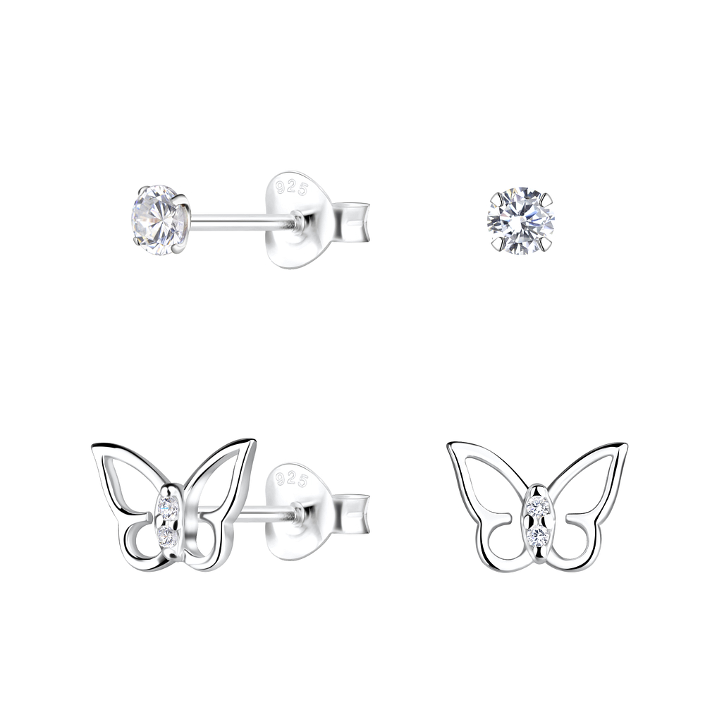 Silver Butterfly Stud Earrings Set - 22313