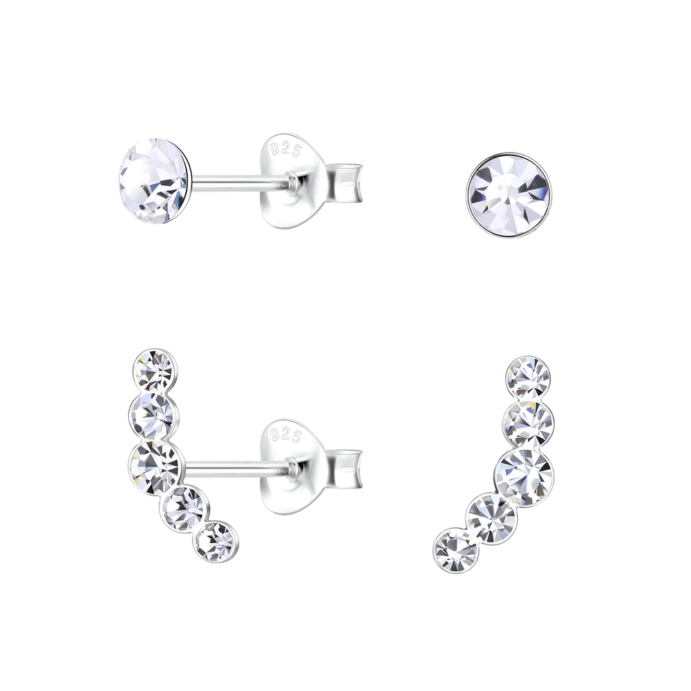 Silver Curved Crystal Stud Earrings Set - 22317