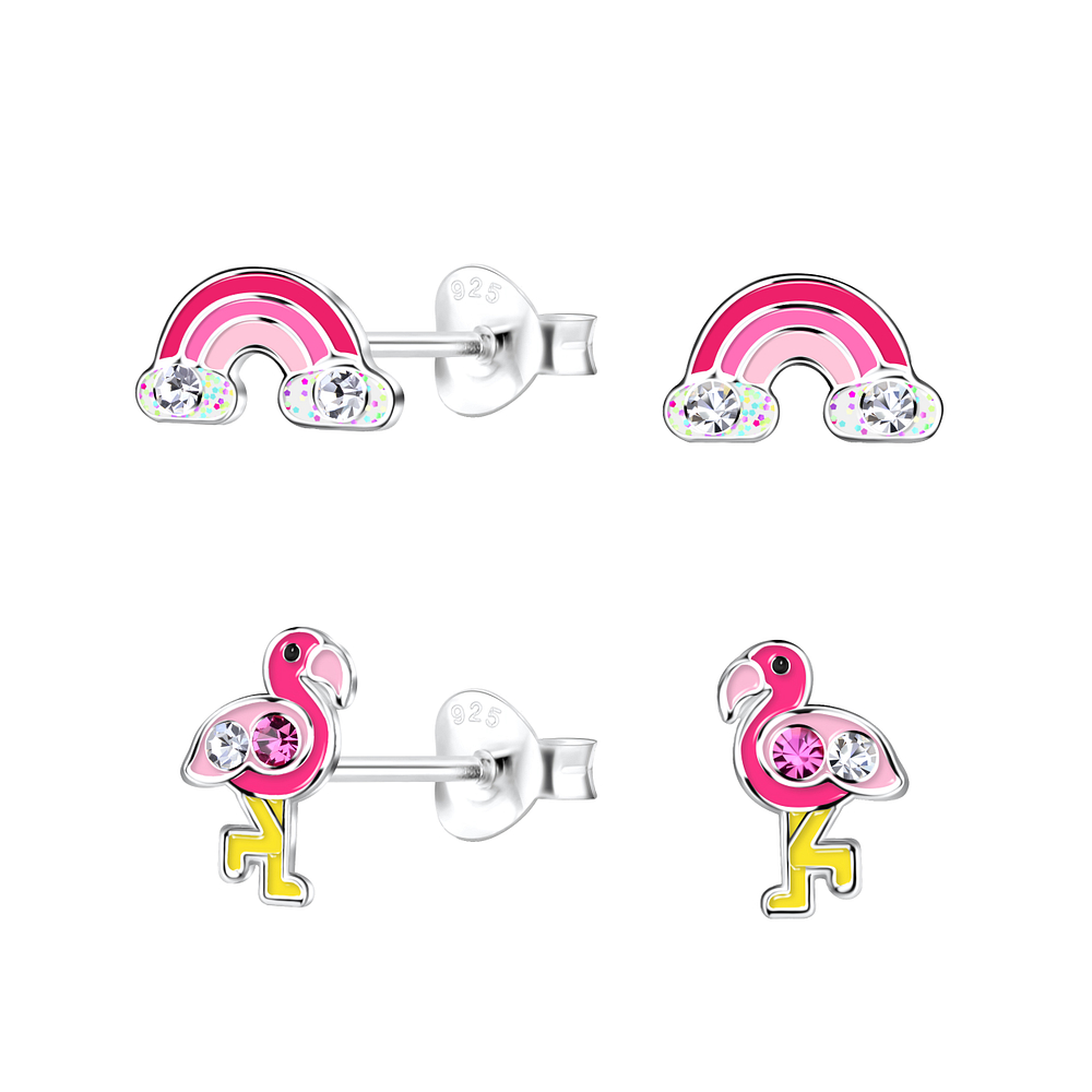 Silver Flamingo Stud Earrings Set - 22303