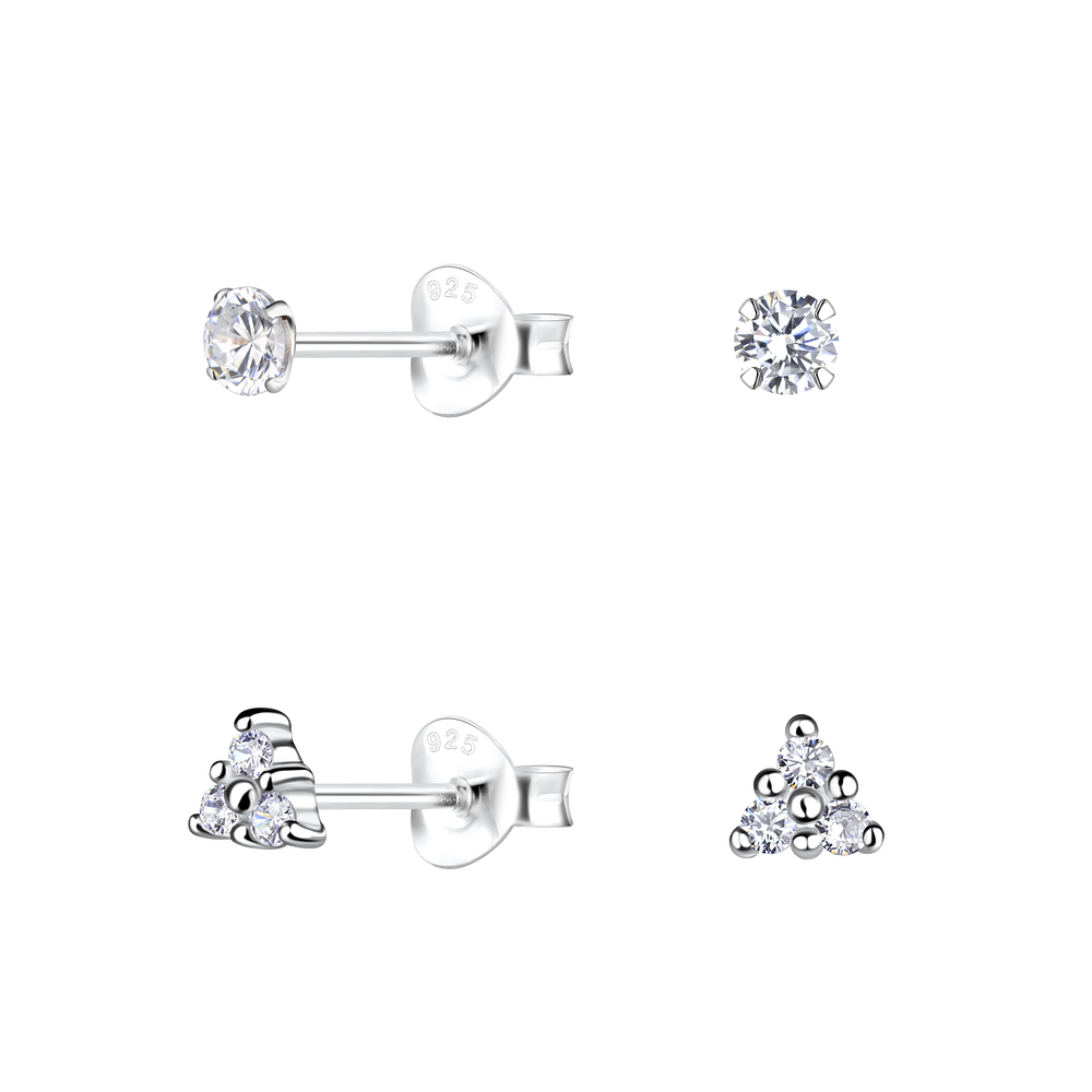 Silver Geometric Stud Earrings Set - 22318