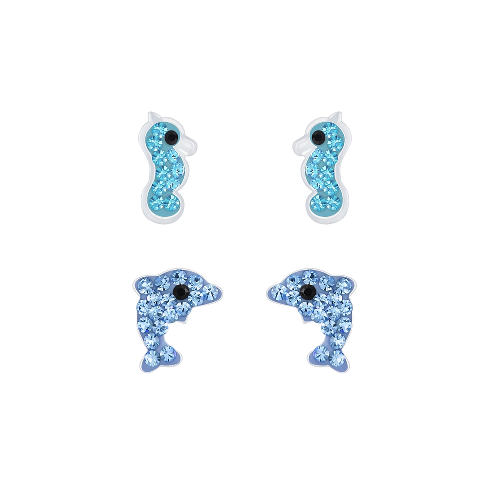 Silver Ocean Stud Earrings Set - 7629