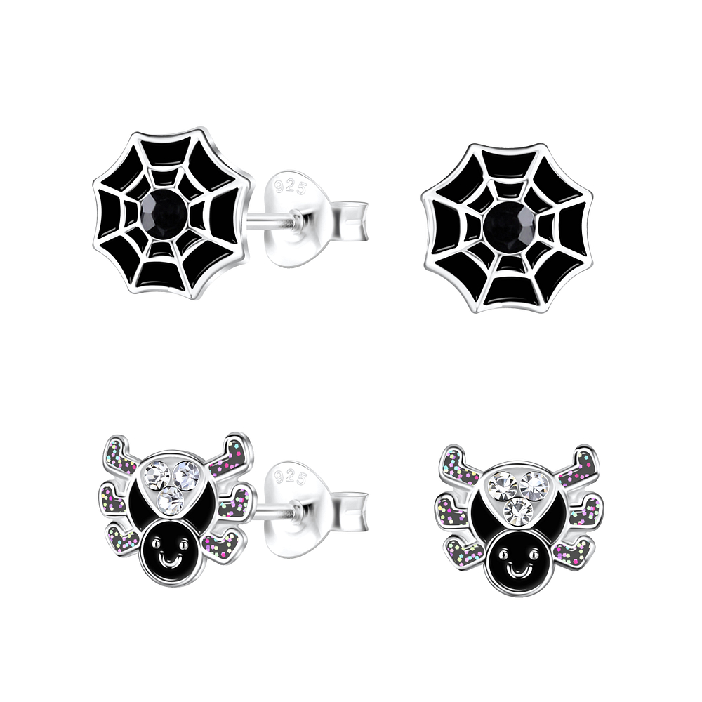 Silver Spider Stud Earrings Set - 22294