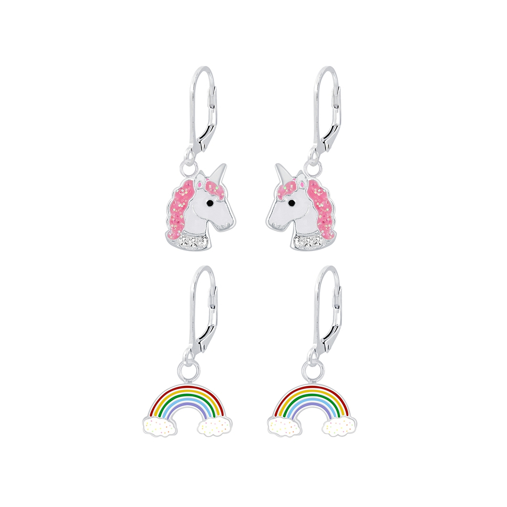 Silver Unicorn and Rainbow Lever Back Earrings Set - 8378