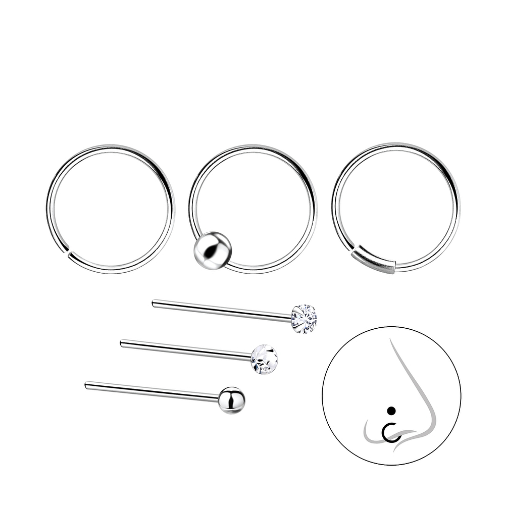 Silver Mixed Nose Jewelry Starter Set – Pack of 6 - 7503