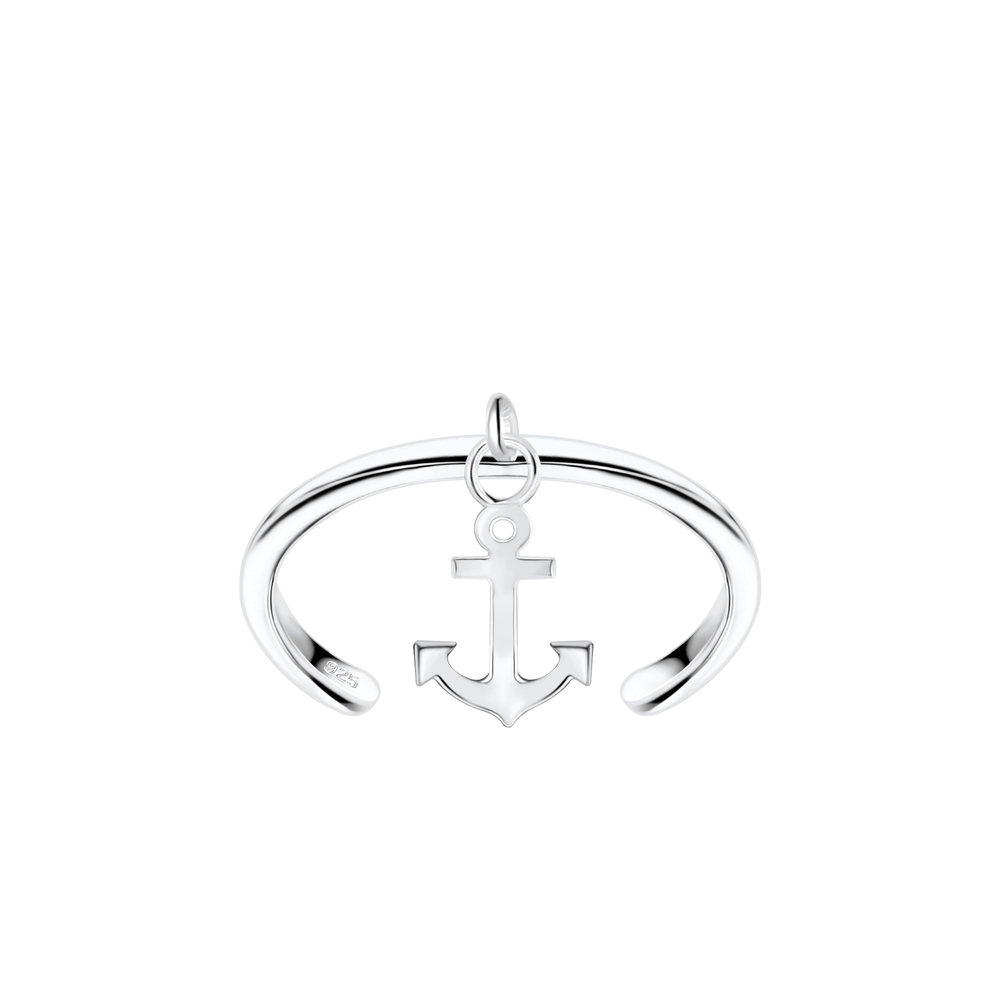 The Wholesale Silver Anchor Toe Ring - 8142 brings a refreshing touch to any ring stack, hypoallergenic with a Silver + E-Coat (Anti-Tarnish) finish and weighing 0.9g