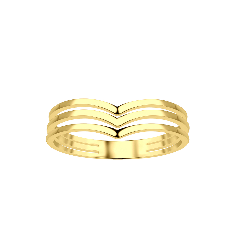 The Wholesale Silver Chevron Ring - 21903 in 925 sterling silver has a 14k Gold + E-Coat (Anti-Tarnish) finish, giving a luxurious look. Offered in sizes 6, 7, 8, each piece is hypoallergenic and weighs about 1.64g.