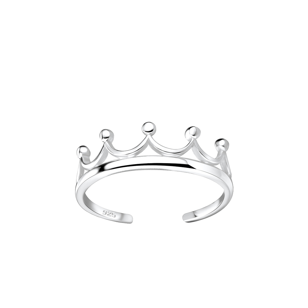 Featuring a smooth Silver + E-Coat (Anti-Tarnish) finish, the Wholesale Silver Crown Toe Ring - 8218 is hypoallergenic and ideal for daily wear, with a comfortable 1 mm bandwidth