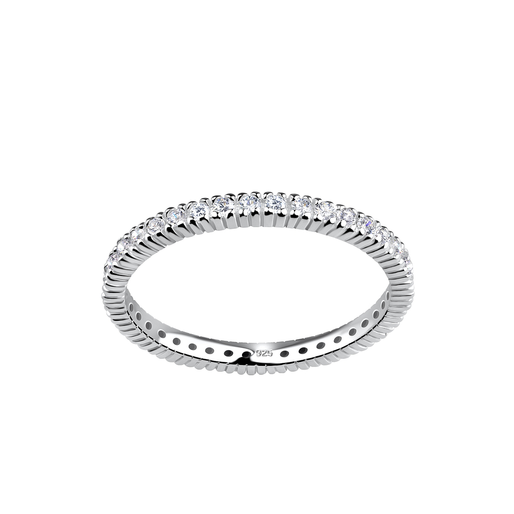 The elegant Wholesale Silver Eternity Ring - 19440, with a simple Silver + E-Coat (Anti-Tarnish) finish, offers a modern design on a 1.8 mm 925 sterling silver band.