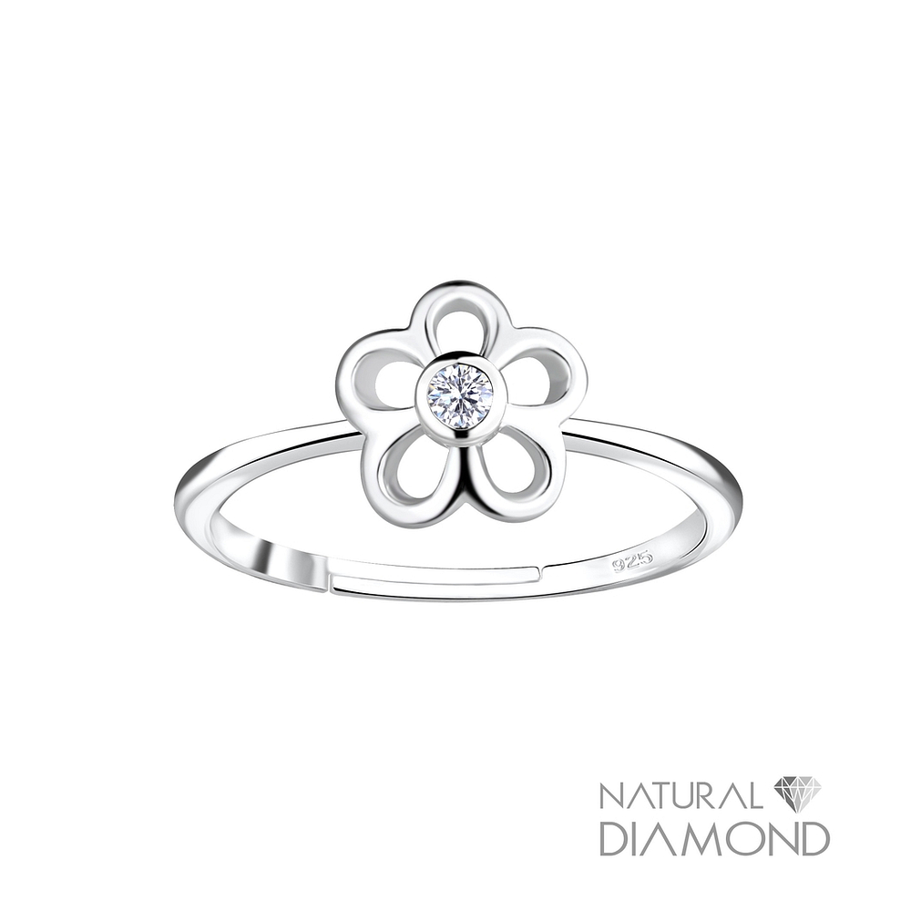 Silver Flower Adjustable Ring With Natural Diamond - 17068