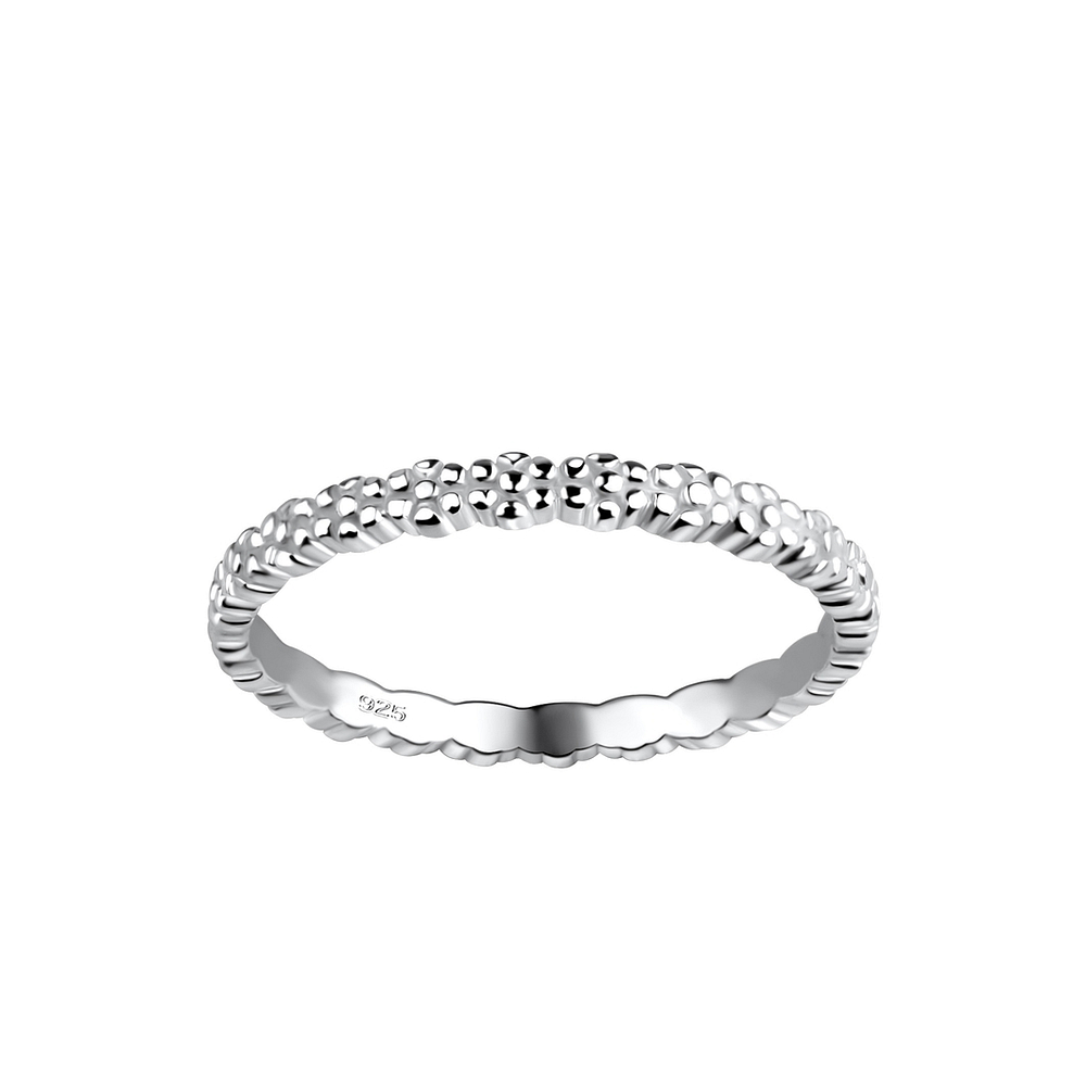 The Wholesale Silver Flower Ring - 18007 in 925 sterling silver has a Silver + E-Coat (Anti-Tarnish) finish, giving a unique look. Offered in sizes 6, 7, 8, each piece is hypoallergenic and weighs about 1.30g.