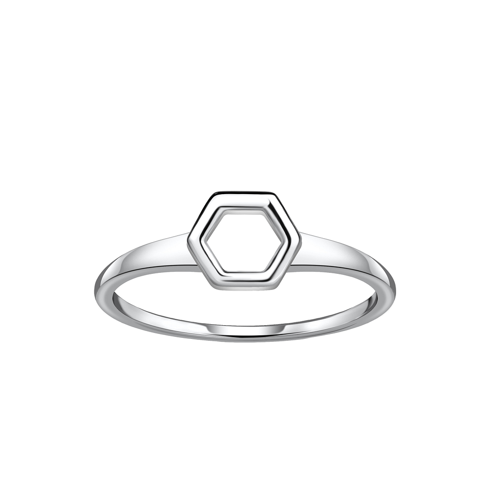 The Wholesale Silver Hexagon Ring - 21306 is crafted with high quality 925 silver and has a Silver + E-Coat (Anti-Tarnish) finish. This Geometrical style is perfect for stacking, with a 1.1 mm bandwidth.