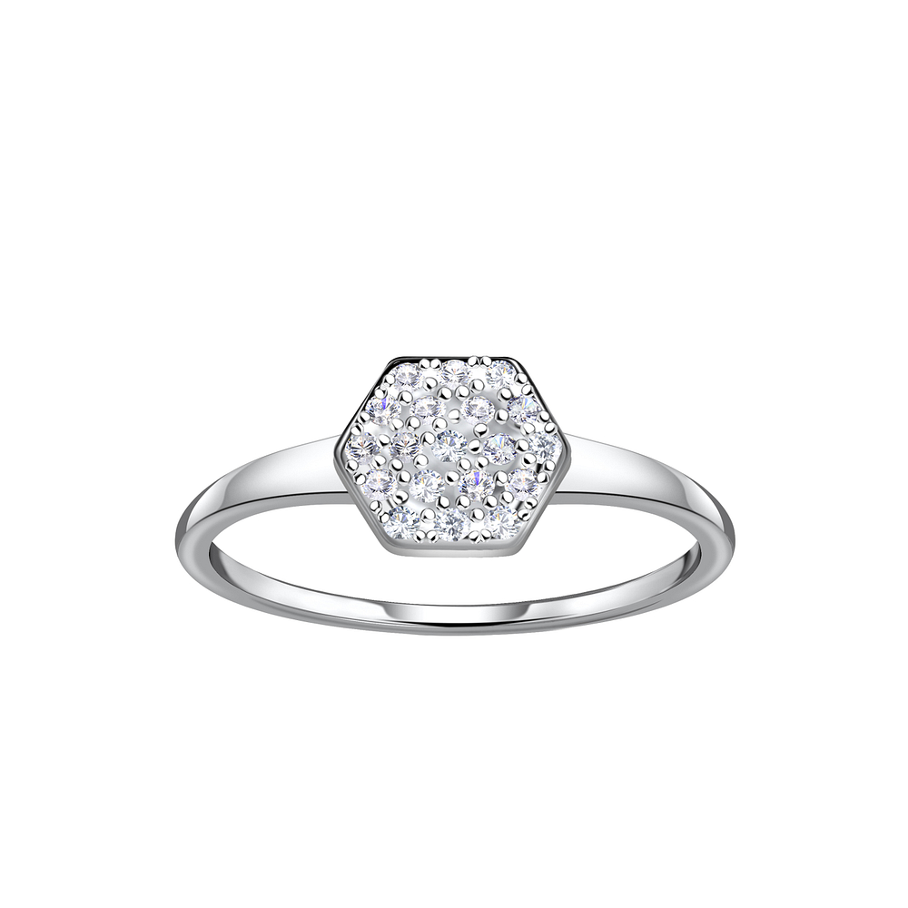 Embrace minimalism with our Wholesale Silver Hexagon Ring - 21439. Completed with a Silver + E-Coat (Anti-Tarnish) finish, each piece has a 1.1 mm silver band and a 1.35g weight.