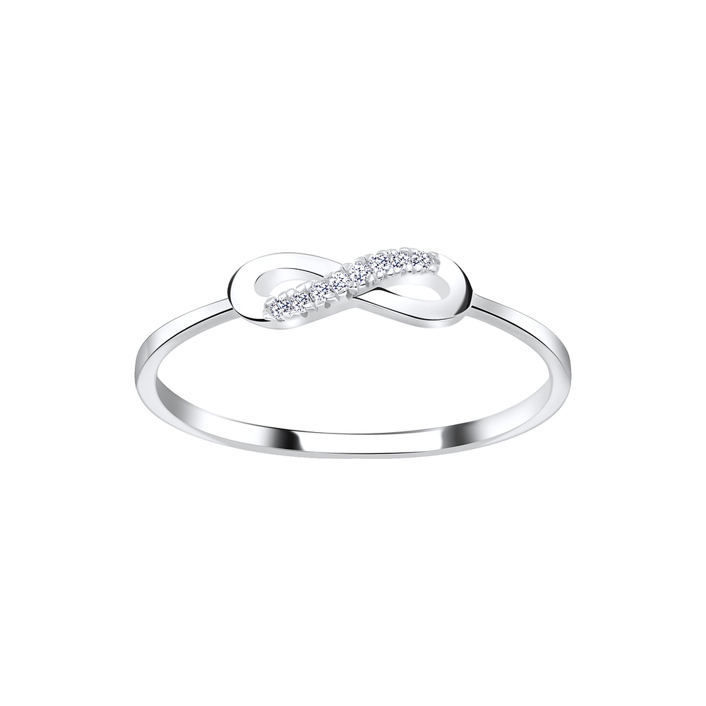 The elegant Wholesale Silver Infinity Ring - 7445, with a simple Silver + E-Coat (Anti-Tarnish) finish, offers a modern Infinity design on a 1.1 mm 925 sterling silver band.