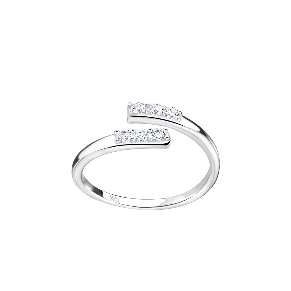 Perfect for stacking, our Wholesale Silver Opened Toe Ring - 8140 features lovely Cubic Zirconia stones, is adjustable, weighs 0.98g, and has a Silver + E-Coat (Anti-Tarnish) finish for a sophisticated touch.