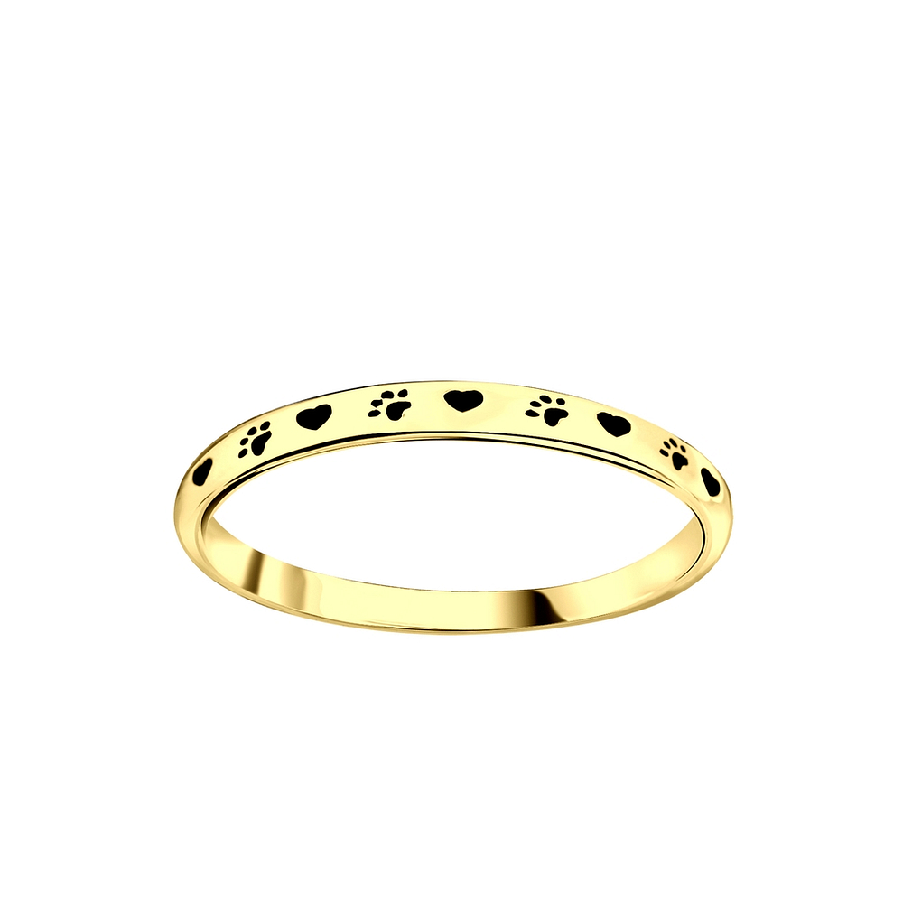 Our Wholesale Silver Paw Print Ring - 5493 adds elegance to 925-silver with a 14k Gold + E-Coat (Anti-Tarnish) finish. This hypoallergenic design is available in sizes 6, 7, 8 with a 1 mm silver band.