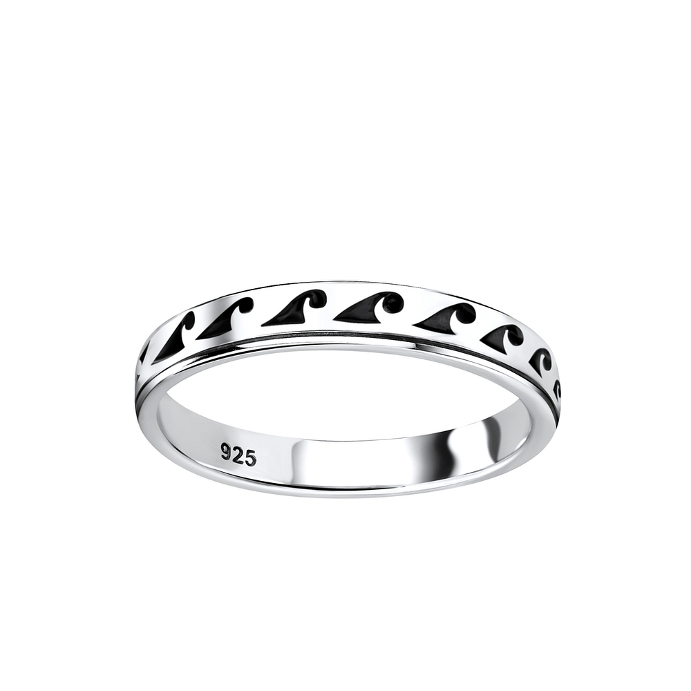 This Wholesale Silver Wave Ring - 8937 gives a simple touch of brilliance with this Oxidized + E-Coat (Anti-Tarnish) finish on 1.1 mm 925 silver band. It comes in sizes 6, 7, 8.