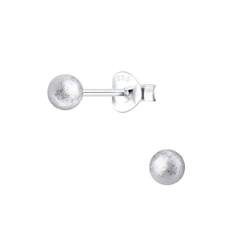 4mm Diamond Dust Ball Silver Stud Earrings - 5246