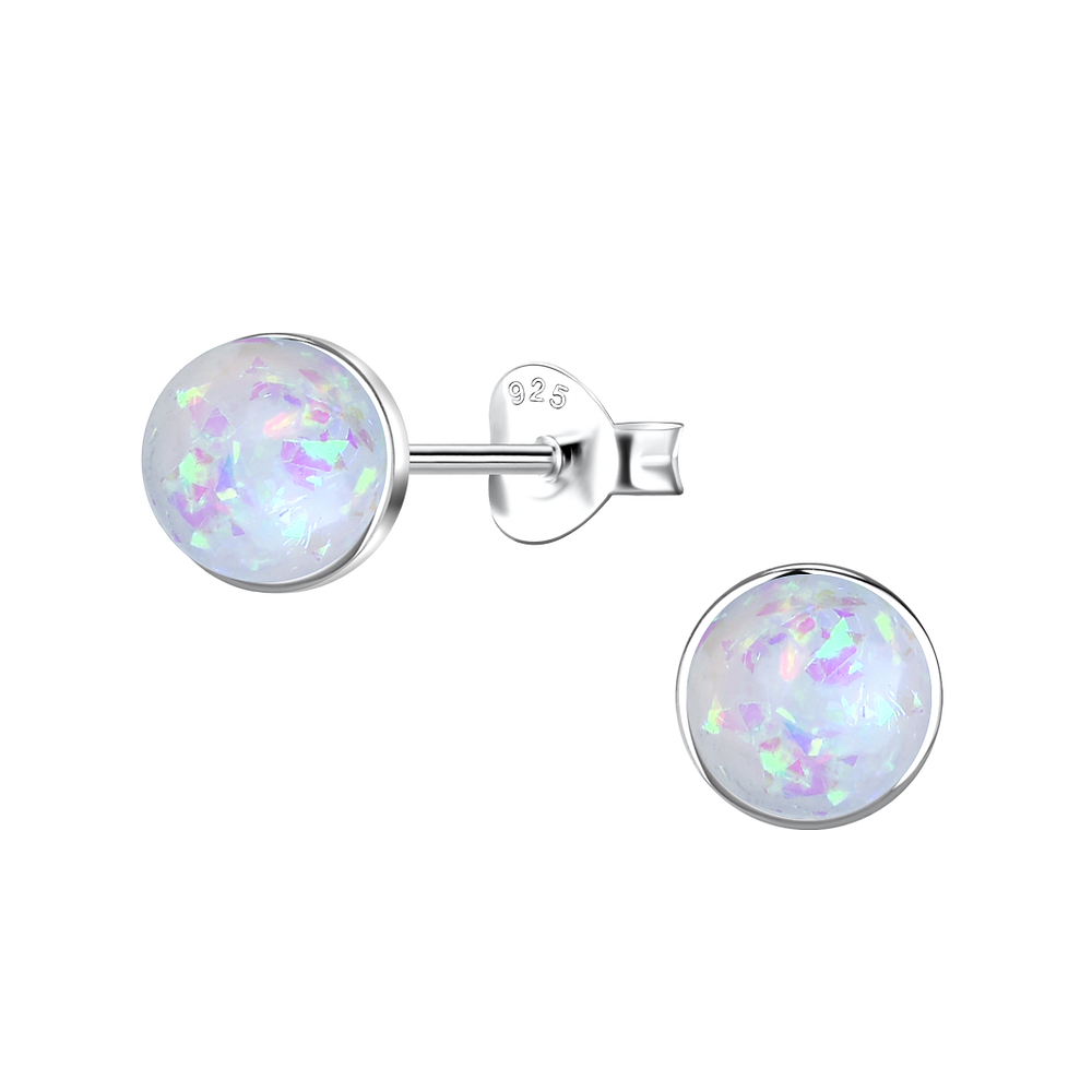 6mm Round Resin Opal Silver Stud Earrings - 24411