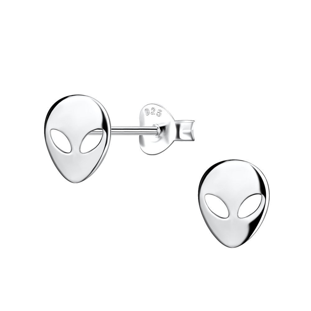 Silver Alien Stud Earrings - 11925