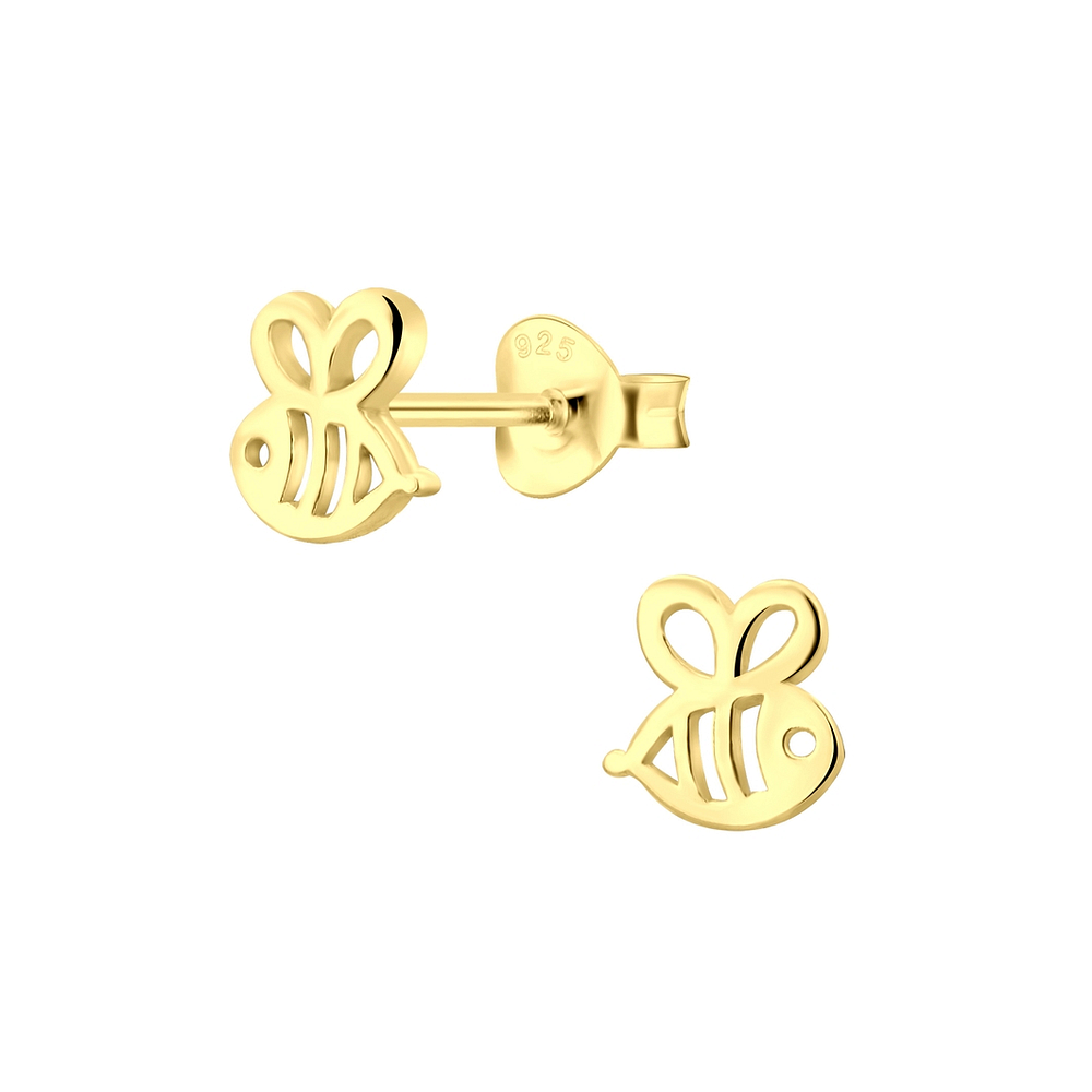 The Wholesale Silver Bee Stud Earrings - 5142 are a luxurious addition to any collection, featuring a minimal design with a bold 14k Gold + E-Coat (Anti-Tarnish) finish. They are hypoallergenic and suitable for any skin type.