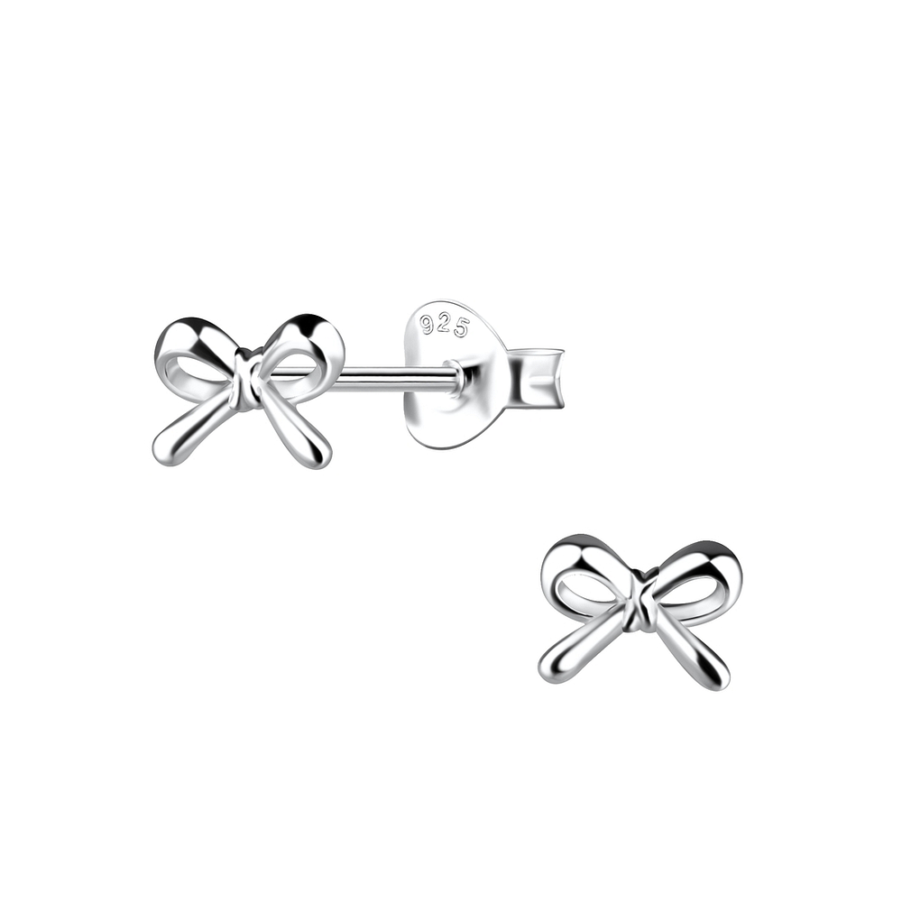 The Wholesale Silver Bow Stud Earrings - 19725, made from nickel-free 925 silver, offer a polished Silver + E-Coat (Anti-Tarnish) finish that goes with their simple charm. Each pair weighs just about 0.48g.