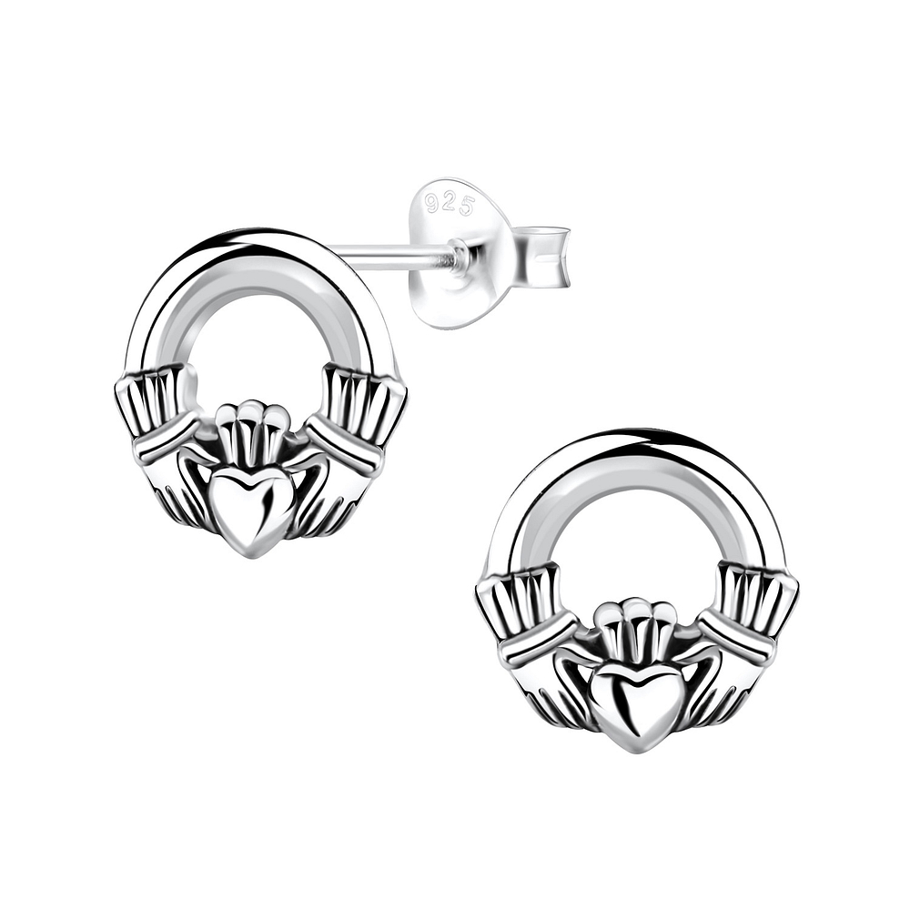 Silver Claddagh Stud Earrings - 2888