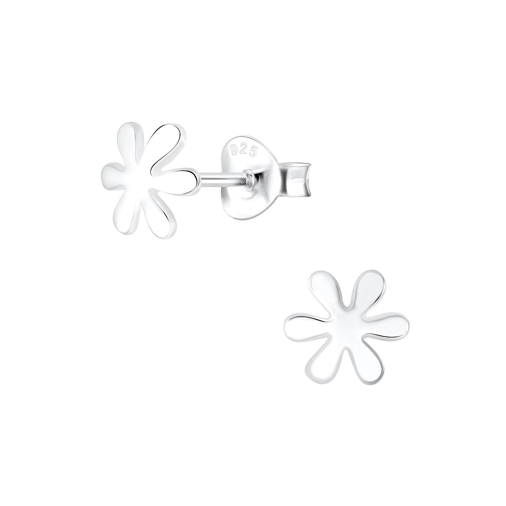 Silver Flower Stud Earrings - 6714