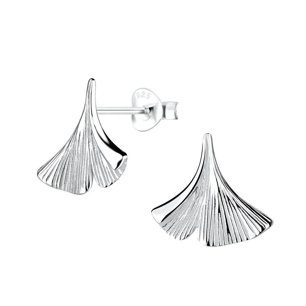 Silver Ginkgo Leaf Stud Earrings - 16577