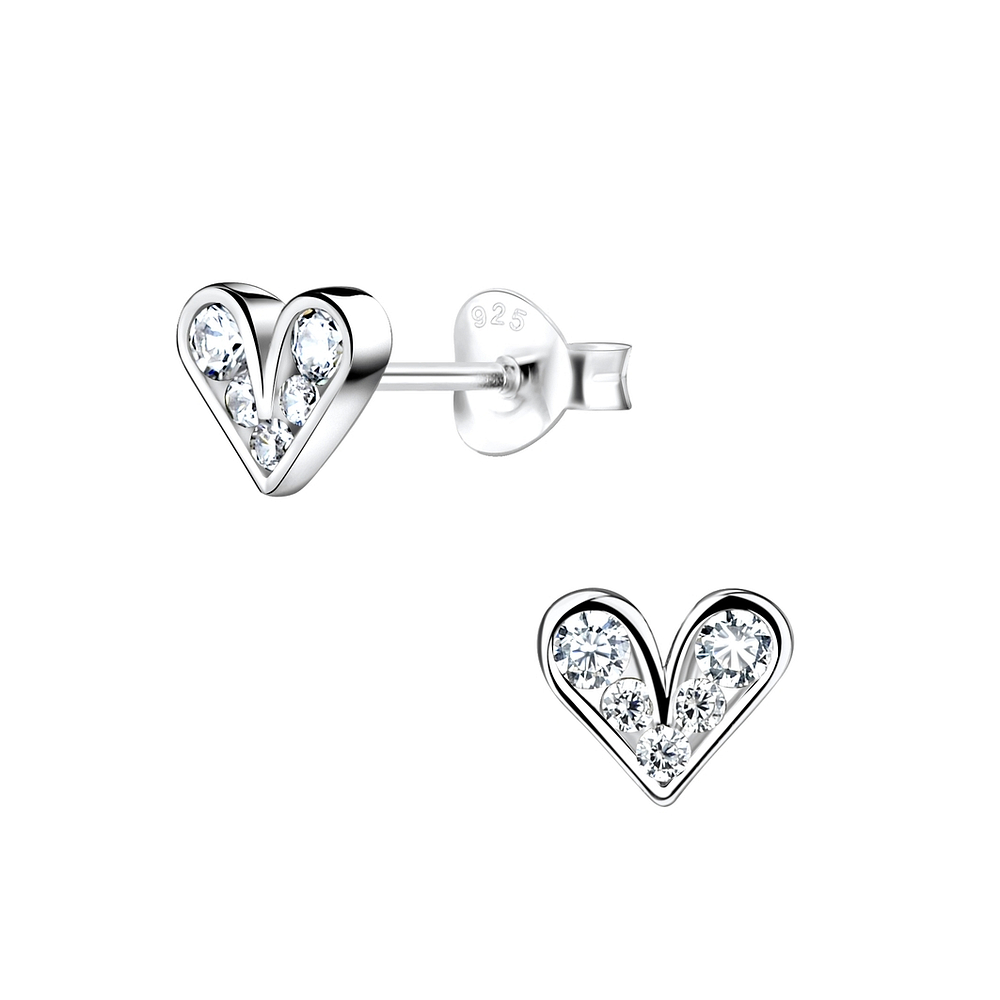 Silver Heart Stud Earrings - 8579