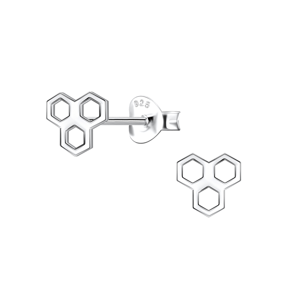 Made of hypoallergenic 925 sterling silver the Wholesale Silver Honeycomb Stud Earrings - 21805 are a safe option for any sensitive skin. The neat Silver + E-Coat (Anti-Tarnish) finish gives a subtle touch to any collection.