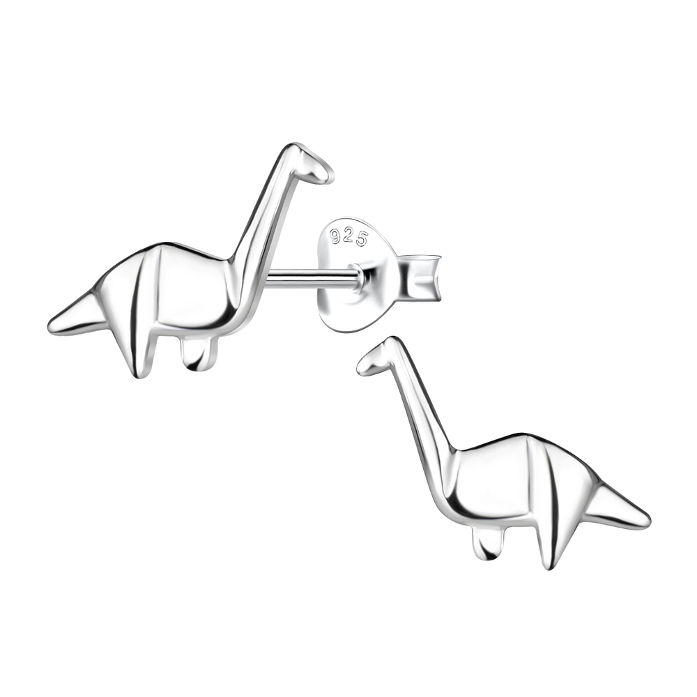 Silver Origami Dinosaur Stud Earrings - 24396