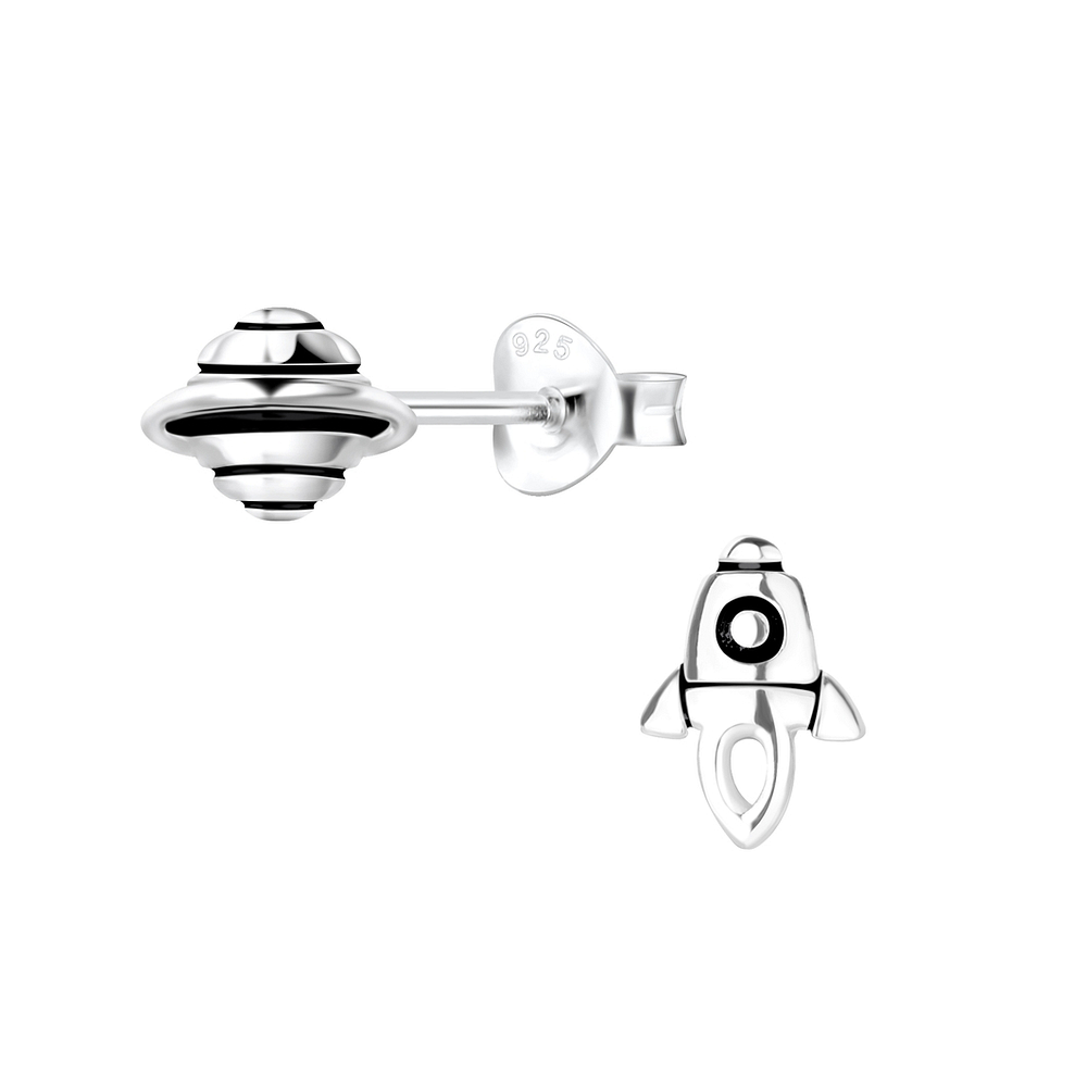 Silver Rocket and Saturn Stud Earrings - 4948