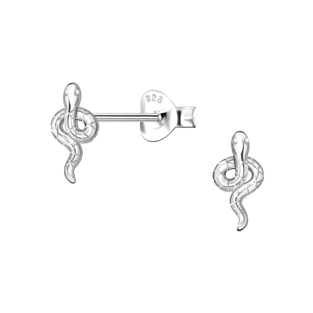 Silver Snake Stud Earrings - 22010