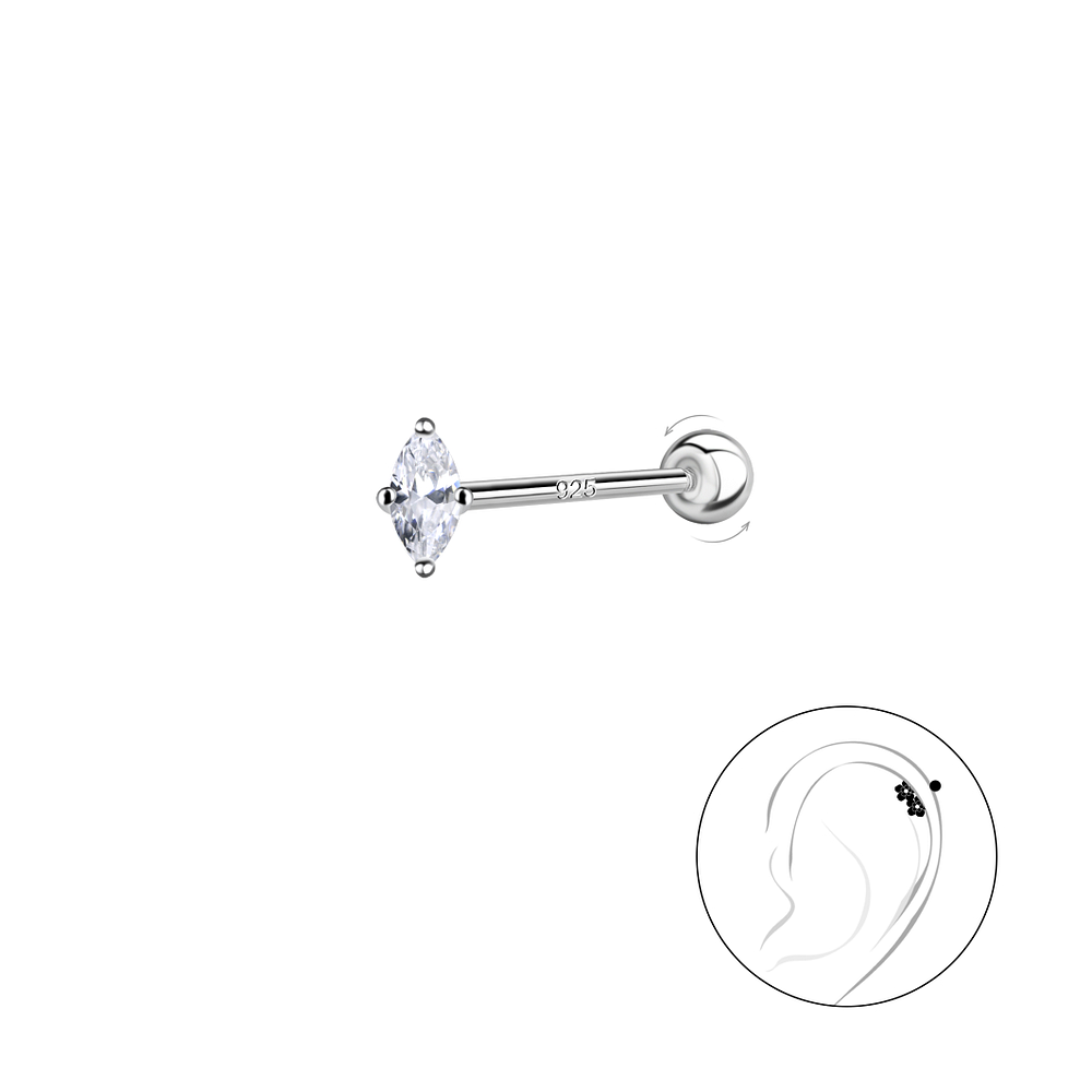 Silver Marquise Cartilage Stud with Silver Ball Screw Back - 20437
